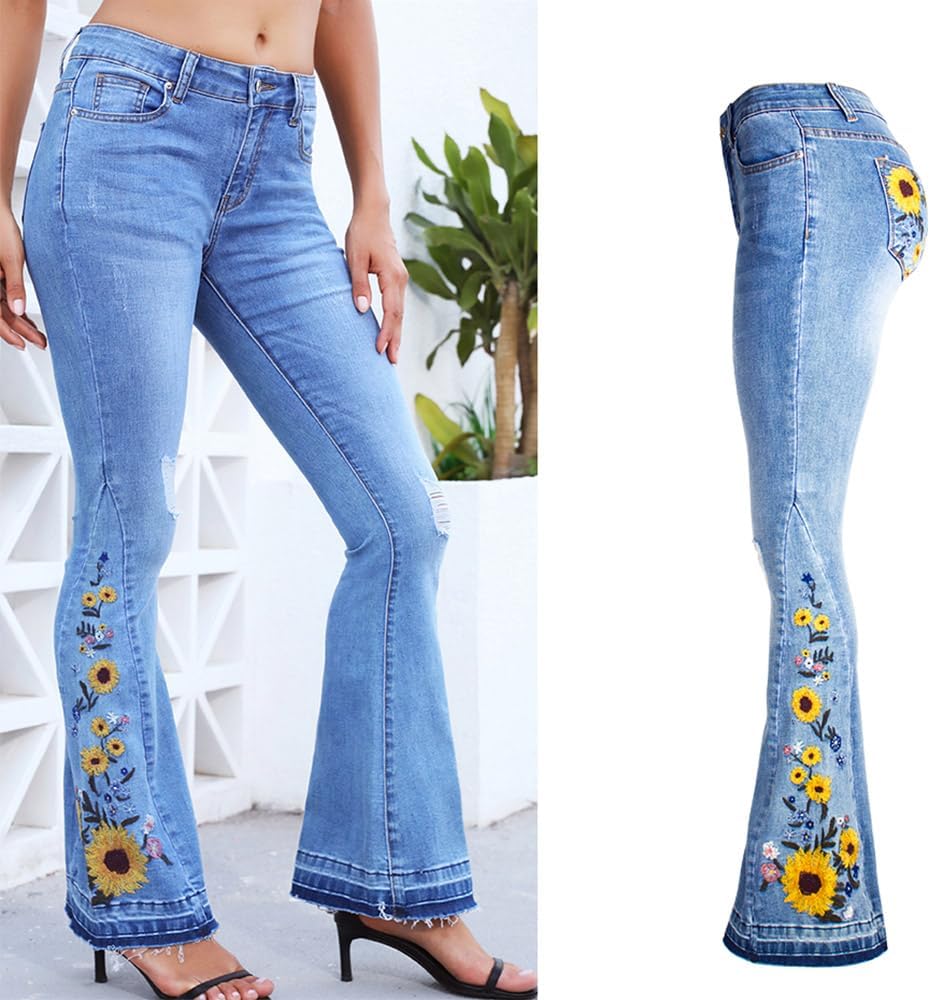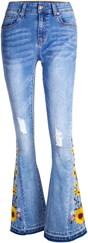 - Versatile Occasions**This embroidered stretch flare denim jeans pants is perfect for your casual outings, work or school, date nights,or travel etc.